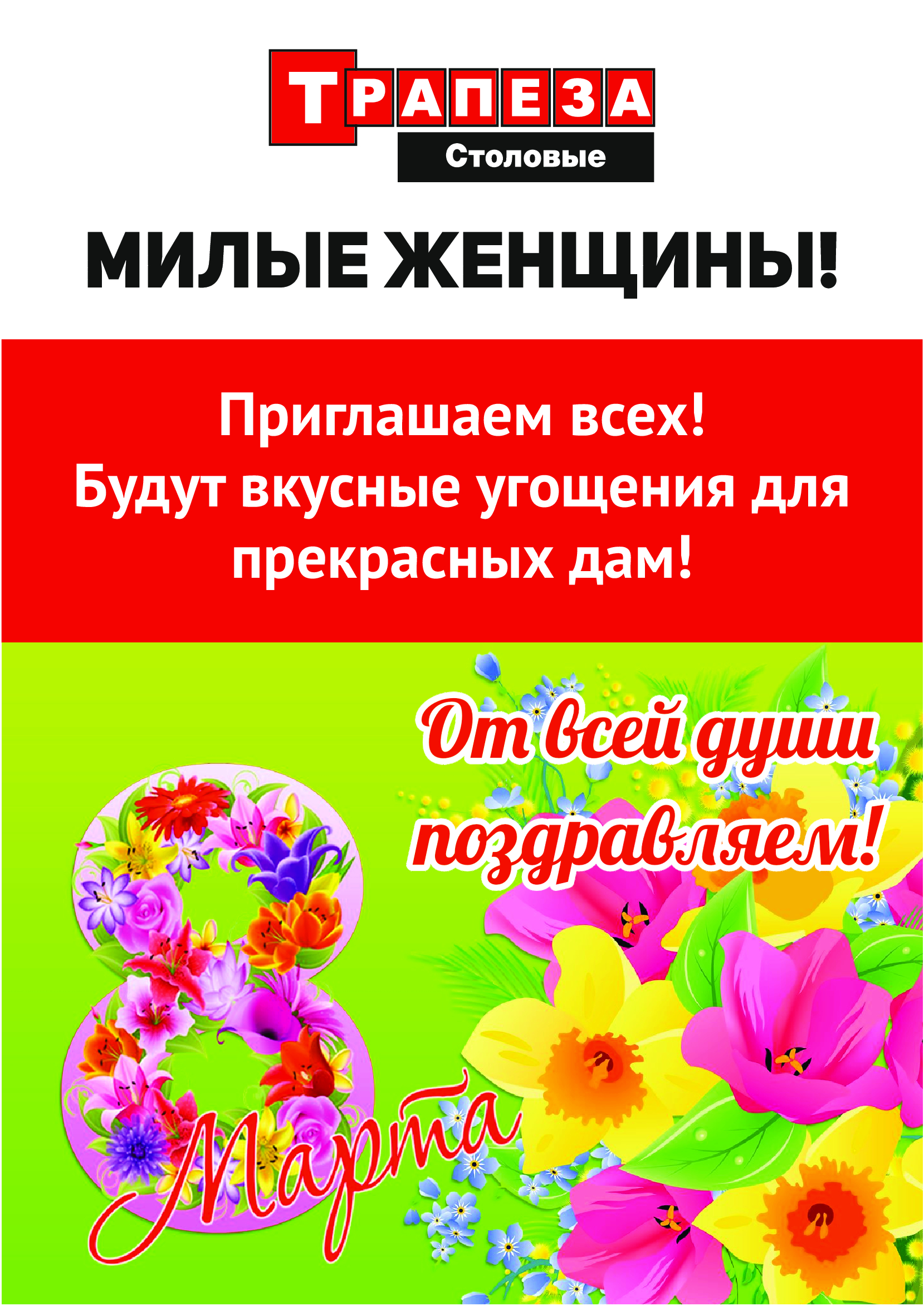 в сети столовых "Трапеза" будут вкусные угощения для милых дам.