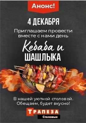 Приглашаем вас отметить День кебаба и шашлыка в сети столовых "Трапеза"!
